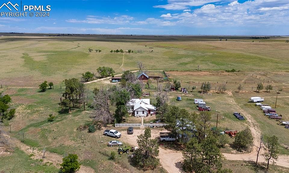 Endless possibilities await with this unique 3-bed, 1-bath home in Rush, Colorado, now on the market with a sprawling 160 acres of untapped potential. Formerly used for cattle grazing and dry bean cultivation, this expansive land is ready for new owners to make their mark. The main house exudes charm and comfort, featuring 3 bedrooms, 1 bathroom, a cozy living room with a wood burning stove, real wood floors, and elegant French doors separating it from the kitchen and dining area. The kitchen is practical and well-equipped with major appliances, ample storage, workspace, and a convenient pass-through with additional seating connecting it seamlessly to the dining room. Recent updates include a new main furnace, a refurbished range/oven purchased this year, and a hot water heater less than 5 years old, ensuring modern comfort and efficiency. Explore the expansive grounds boasting numerous outbuildings including a bean elevator, 2 chicken coops, sheds, barn and stables and a mechanical shop with a lube stop for ease of working on your favorite vehicles! Mobile home on property is for storage purposes only. Perfect for livestock enthusiasts, the property features a stock tank and calving sheds centrally located, offering ample opportunity for cattle farming or leasing. Property has ample water access with 5 water hydrants located throughout. With endless potential for agricultural pursuits or creating your dream home, this property is a rare find. Schedule your showing today and envision the possibilities!