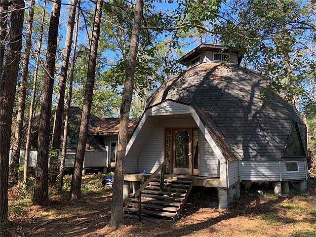 Diamond that needs some polishing! 3 Geodesic domes connected to create a 4 bedrooms and 4 baths home. Tucked away in the woods of over 10acres. Easy access to Hwy 22 and I-12. Come see the potential.