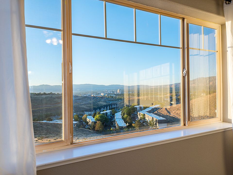 Panoramic views of Reno and the surrounding mountains make this airy and light condo on a quiet cul-de-sac a rare find! At 1,518sq ft, a very spacious 2BR. Moments away from UNR, TMCC, Rancho San Rafael Park, and downtown, and easy access to freeway & North Virginia St. The 2 en suite bedrooms have big closets & private baths, and washer/dryer included in rental are conveniently located upstairs. Sunny, clean kitchen has silestone countertops and tile floor, and a dining nook looking out at the views of mountains, city and valley. Enjoy a spacious balcony and 2-car tandem garage with tons of shelving and storage space. You can watch sunrise, moonrise, fireworks and balloon races all from the privacy of your balcony or bedroom! No street parking. Owner pays sewer, trash and HOA fees. Renter pays electric, gas, water, internet. One cat or dog under 40lbs ok with extra $500 pet deposit. Application fee $35 per adult occupant. Move-in (re-keying) fee $60.