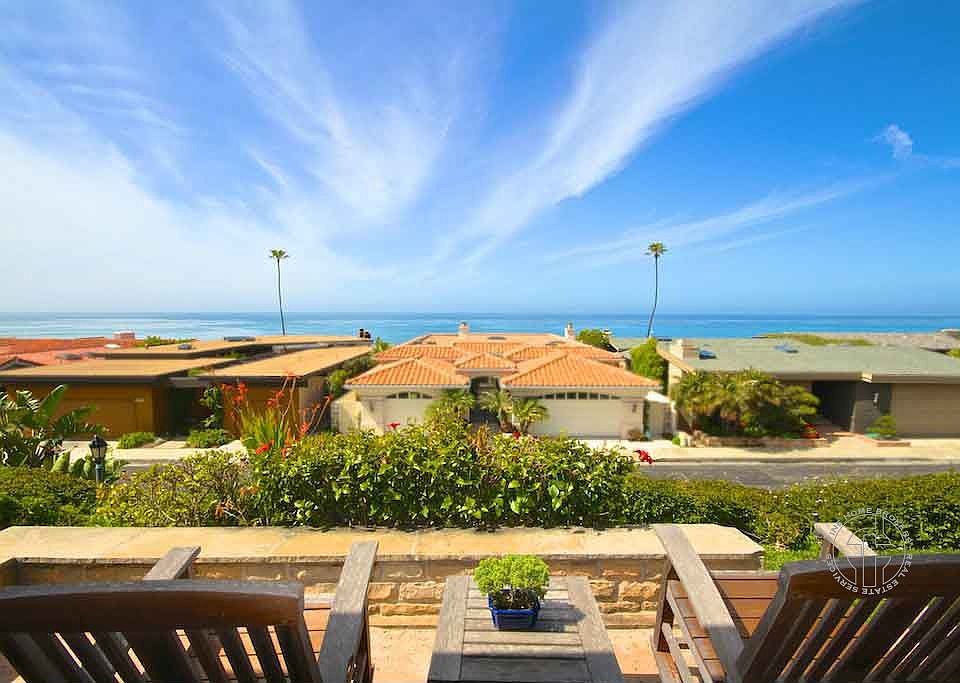 A rare opportunity to purchase a truly panoramic ocean view home in the exclusive, guard gated, private beach front community of Cyprus Shore. This property combines ocean, Catalina and sunset views, a prestigious community, private beaches, private access to a surfer’s paradise, history, and much more. If you are one of the fortunate few searching for an ocean view home in a private beachfront community.... the opportunity has arrived; these properties rarely come to market. Living room, master suite and dining room views stretch south from Cotton Point (home of the Western White House) and north to Dana Point. Vivid blue ocean provides the backdrop as spectacular interior views follow visitors throughout the property. Designed by world renown architect Thornton M. Abell, F.A.I.A, the single level home is a timeless modern and bright design that emphasizes expansive views with walls of floor to ceiling windows. The property wraps around a private courtyard that brightens and expands the interior space. The home includes updated kitchen, modern fixtures, and a stone living room fireplace.The balcony, spanning the back of the property, offers the perfect retreat to enjoy your morning coffee, and a relaxing evening after a day at your private beach.