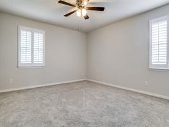 Discover this beautifully designed home in the desirable Winding Creek neighborhood of McKinney. The open floor plan features a two-story living area with a cozy fireplace, an eat-in kitchen with granite countertops, a butler's pantry, and stunning views of the private backyard and patio. This home is equipped with a water softener system for added comfort and convenience. The main-level master suite includes a sitting area and a luxurious bath. A private study with French doors and a home planning center with built-ins are conveniently located near the three-car garage, along with an oversized laundry room featuring a sink and space for a freezer. Upstairs offers a large game room, a fully equipped media room (can be used as a sixth bedroom), two bedrooms with walk-in closets connected by a Jack-and-Jill bath, and two additional bedrooms with a shared full bath. Additional highlights include plantation shutters throughout, quiet surroundings, and proximity to top-rated schools and all that McKinney has to offer.