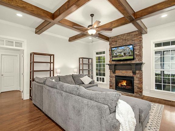 Up to $4,000 in closing cost with using a preferred lender. Immaculately detailed in every way with 5 spacious bedrooms, it boasts beautiful wood floors throughout the entire first floor. The home boasts recent updates that include fresh interior paint, oven (2022), a brand new water heater (2024), and a completely replaced HVAC system (2024). Additionally, the exterior of the home was freshly painted in 2021. First floor features two story entry foyer, eat in kitchen with breakfast area and separate dining, family room with stone fireplace, drop zone, bedroom and hall bath perfect for an office, guest or could be a secondary primary with private door and drop zone. Second floor features primary bedroom that serves as a peaceful retreat, complete with a HUGE walk-in closet outfitted with built-ins for convenience and luxury, (3) spacious secondary bedrooms & laundry room. The fully finished third floor is a true bonus, featuring a recreation room, a half bath, a mini kitchenette, and a dedicated exercise room, offering flexibility for any lifestyle.Additional features include your own private oasis with a screened in porch, stunning in-ground pool surrounded by expansive decking, fencing, and impeccable landscaping, all completely secluded from the street.Heritage Neighborhood Amenities Enjoy tree-lined streets, sidewalks, a renowned golf course (with membership and fee), two neighborhood pools( with fee), playgrounds, greenways, a clubhouse, and tennis courts. Outdoor lovers will appreciate the peaceful fishing pond, access to public paved trails, and easy access to the community pool, just steps away from your door. With the convenience of nearby restaurants, grocery stores, and charming Historic Downtown Wake Forest just minutes away, you're never far from a variety of dining, shopping, and recreational activities. Major interstates are close by, putting you at the heart of everything this vibrant area has to offer.