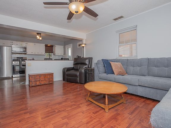 Welcome to this beautiful move-in ready all-brick ranch, featuring 3 spacious bedrooms and an open-concept layout. The heart of the home is the stylish kitchen, complete with updated finishes, a bar-level counter ideal for casual dining or entertaining, and seamless flow into the living area. Enjoy the privacy of a fully fenced backyard ready for backyard entertainment including a swingset and storage barn. Additional highlights include a covered carport and low-maintenance brick exterior. Immediate possession at closing!