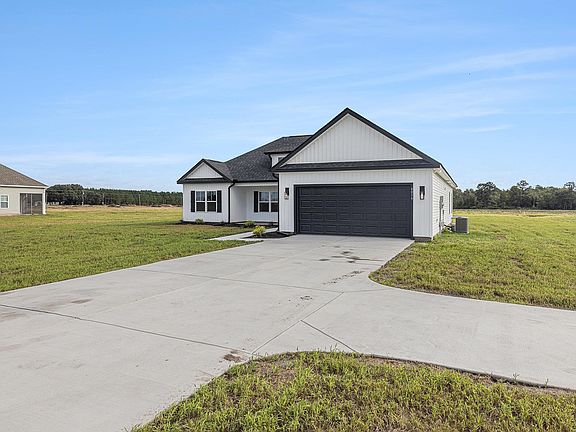 Charming 3-Bedroom Home with Office on 1.09 Acres – No HOA! Located close to Highway 22 granting you quick access to the beach, golf, shopping and more! Welcome to this stunning 3-bedroom, 2-bath home with a dedicated office, nestled on a spacious 1.09 acre lot with no HOA or deed restrictions—offering you the freedom to make it your own. Step inside to find luxury vinyl plank (LVP) flooring throughout, along with remote-controlled ceiling fans in all bedrooms for ultimate comfort. The large living room features a vaulted ceiling, a ceiling fan, and an electric fireplace, creating a cozy yet open atmosphere. The kitchen is beautifully designed with ice-white shaker cabinets, sleek gold hardware, and granite countertops. A white apron-front sink adds a farmhouse touch, while the black stainless steel appliances—including a range, microwave, and dishwasher—blend modern style with functionality. The primary suite boasts a tray ceiling, walk-in closet, and a spa-like en-suite bathroom. The primary bath features dual sinks, a tiled shower, a private water closet, and a linen closet for added storage. Throughout the home, black lighting fixtures add a stylish contrast to the bright and airy design. Enjoy the peace and privacy of country living, all while being close to modern conveniences. Don't miss this incredible opportunity—schedule your showing today! ** Photos are of a previously built and sold model. Some features and finishes may differ**