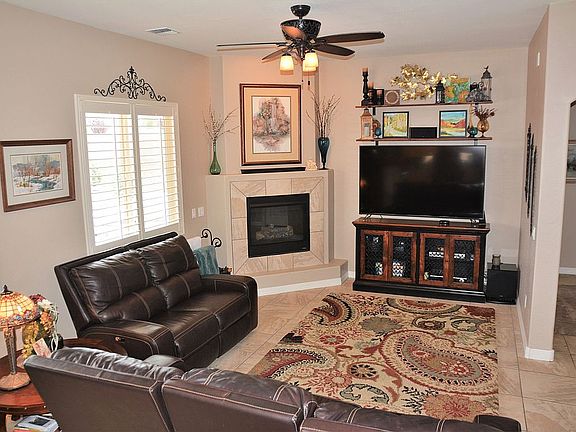 Newer floor plan on .38 acre corner view lot with custom landscaping, 3 car garage, paver driveway and walk ways. Home has split floor plan with den or formal dining room off the kitchen, extended back patio with bay window in master. Home includes owned 5.4k solar system, fireplace, plantation shutters, front security screen door, water softener, garage cabinets, upgraded tile throughout with premium carpet in the bedrooms, 2-tone neutral paint, granite counter tops, upgraded staggered kitchen cabinets, upgraded bathroom 35" high cabinets, with much more. Easy access to Glassford Hill, Iron King, Pevine trails, community amenities including; pools, fitness rooms, tennis, basketball, pickle ball and playground. 2.5% Commission to Buyers Agent