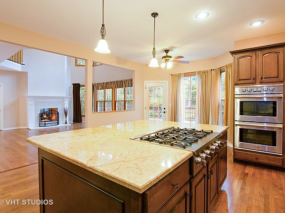 A professionally landscaped front walkway sets the tone for this impressive welcoming home! Enter the expansive open floor plan in a bright 2 story foyer, gleaming hardwood floors throughout the home are highlighted by large floor to ceiling Pella windows. The 1st floor is host to a living room, formal dining room, half bath, office w/ fireplace, & kitchen that will make you start planning your first party with large stainless steel appliances, extra-large island for quick meals, a breakfast nook, and beautiful cabinets & lighting. Flow into the family room, enjoy a cozy fireplace while taking in the wooded views through the large windows in this two story room. On the 2nd floor find a master bedroom with window seat, a master bath & closets that will make staying organized a breeze. Also find three additional bedrooms and an two additional bathroom. Fully finished basement w/ sauna & half bath. Enjoy the backyard on the large deck. Prairie Grove/Prairie Grove Schools. Close to Metra