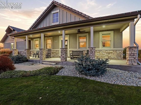 Peace, privacy and paradise in the pines of Walden Preserve- this home has the seclusion and style you're looking for in your ultimate Colorado dream home. With farmhouse styling and a wide front porch, this home encompasses the best of Front Range living with a touch of Southern charm. With a premium lot stretching almost 1.5 acres and a neighborhood walking trail behind, you'll love the privacy and natural beauty of this secluded lot, with the convenience of this unbeatable location near Highway 83, between Colorado Springs and Denver. The location is so private, the home isn't even immediately visible from the street. The flag lot location means almost no traffic going past. It's so quiet, you can hear the pine needles drop in the breeze. This home makes a great first impression: the tile roof, custom stucco construction, cantilevered four-car garage and professional landscaping offer outstanding curb appeal. Inside, the entry opens to the formal dining and great room and the expansive views beyond the covered, composite rear deck. The great room has built-ins and a stone-surround fireplace, beamed ceilings and gorgeous hickory floors. The kitchen is and easy to love - long expanses of counter space, high-end appliances and easy access to the garage entrance and double pantry for unloading groceries. One feature of this incredible floor plan is the three main-floor bedrooms, plus two more bedrooms on the basement level. There is also a dedicated main-floor office so no trying to cram multiple functions into one flex space - this home has dedicated spaces for it all. Another feature you'll appreciate is all the storage - TWO storage rooms in the basement and handy storage cabinets and closets throughout. The back yard features an irrigated gardening patch - perfect for growing your own fruits and vegetables. With D-38 schools and some of the areas best parks and trails nearby, this home is truly what dreams are made of!