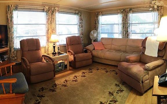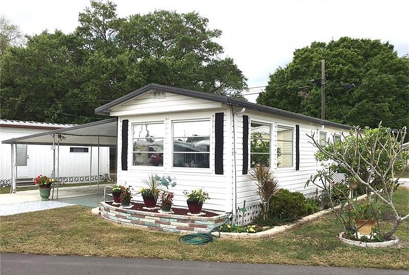 Nice sized single wide mobile home with glassed in lanai and double carport. Home is in nice condition and turnkey furnished. Beautiful laminate floors and newer central A/C. Citrus Grove is a fenced and gated community with gate locked 7 pm to 7 am for added security. Over 55 but small pet OK. Low maintenance fee and short drive to the beach.