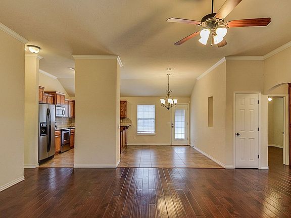 This 3 bedroom home features beautiful hardwood floors throughout with tile in the kitchen, dining and bathrooms. The living room has a corner fireplace. Kitchen has granite counter tops with all kitchen appliances furnished. Master suite has a large walk in closet, double vanity in master bath with a separate shower. Ceiling fans throughout. The storm shelter is an added feature. Easy access to shopping, restaurants, freeway and entertainment. Approximately 15 minutes to Tinker AFB. Call today to schedule a private showing. Dogs 25 lbs and under accepted.