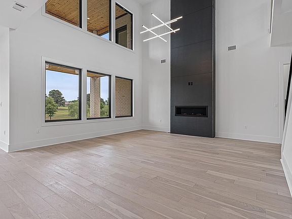 The most beautiful VIEWS in Jonesboro are breathtaking ~ overlooking RidgePointe Country Club golf course. This stunning contemporary home has 4 bedrooms, 3 1/2 bathrooms + media/2nd living room. The 2 story entry & living are filled with natural light in the living, dining & kitchen areas. Hardwood flooring throughout is the perfect shade, & inviting. TWO covered patios, one on the main level, and the 2nd on the upper level for panoramic view of the pristine golf course with sounds from the pond fountains filling you with relaxation & peace. The kitchen is absolutely stunning with bar seating on the large island with handsome dark quartz countertops. The kitchen appliances are top of the line with a chef's 6-burner gas range with a sleek vent-a-hood. The walk-in pantry is also beautiful & seamlessly integrates with the kitchen. The primary ensuite is picture perfect with sliding doors overlooking the golf course with a private patio. The spa styled bathroom includes a massive wet room with shower & stand alone tub, all connecting with large closet & laundry room. Upstairs you'll be amazed at the iron staircase & views as you enter the media room that can also be used as a 2nd liv