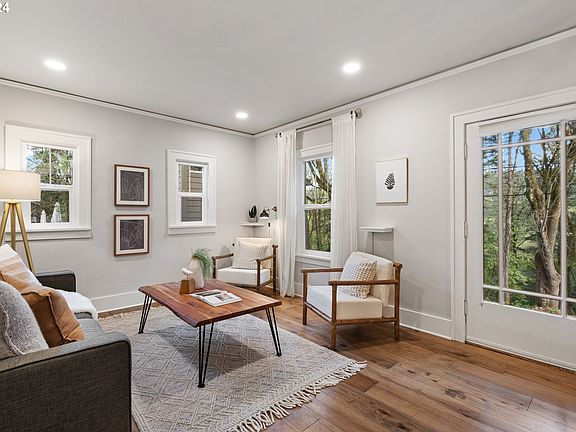 This adorable bungalow-cottage at the end of a private lane is the perfect place to nest; winter, spring, summer, and fall. Incredible pride of ownership shows in the lengthy list of updates. Here are just a few! 2023 updates: basement remodel including bedroom suite with full bath and walk-in closet, new flooring & carpet, crawlspace encapsulation, tankless water heater, new furnace, & new A/C. 2018 updates: full kitchen remodel, wood floors & trim, electrical updates and new panel, several new windows, new kitchen & laundry appliances, 2 bathroom remodels, & new basement stairs (to code!). Custom cedar screen doors, 2 strong entry options and porches round out this one-of-a-kind home! The expansive back yard with blueberries galore, is a private green oasis: perfect for relaxing, gardening and entertaining. Custom built shed with electricity is a bonus storage or studio space. The location can't be beat; surrounded by nature and abutting green space, yet super close to Gabriel Park and the shops and restaurants of Hillsdale. Easy commute to downtown or OHSU [Home Energy Score = 6. HES Report at https://rpt.greenbuildingregistry.com/hes/OR10226175]
