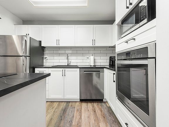 New flooringSleek kitchen islandShiny new appliances