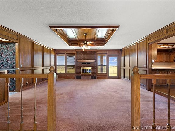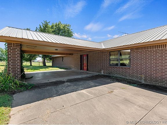Incredible 3 bed, 2 bath home overlooks 20 beautiful acres! Circle driveway to home nestled in the trees. Huge kitchen with tons of cabinets and countertops galore! Lg dining room with built in china cabinet. Step down into the cozy living room with wood burning fireplace and wet bar. Metal roof covers the 2 car carport and enormous covered patio along the back of the home. 6100 Sq Ft barn with arena, hay barn, loafing sheds, and a deep pond for livestock. Trash compactor is not warranted. Oversized and extra deep 2 car garage with a quarter bath (toilet only). Cherry trees around pond!