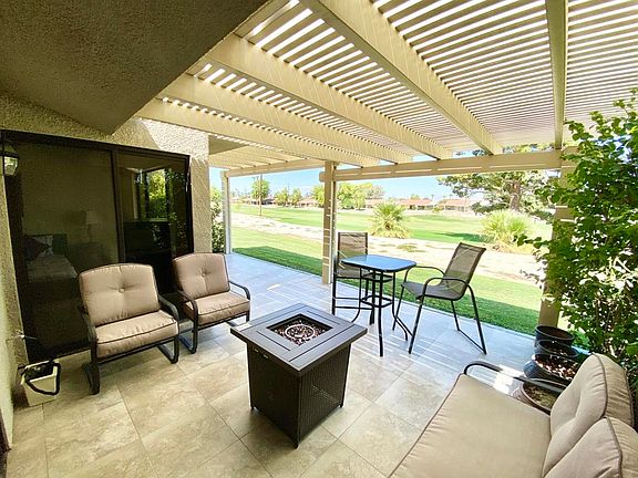 Desirable 2 bedrooms 2 baths condo iocated on the 15th fairway of the golf course. Enjoy Fairway & Mountain Views. Tile floors throughout home, including the extended patio on fairway, which also includes wonderful covered patio, BBQ & Fire pit. Kitchen has ben updated & main bath has glass block shower. The spacious great room has vaulted ceiling, open kitchen, dining area, slider to patio. Primary bedroom has fairway & mountain views along with slider to patio. Guest bedroom has the doors removed to allow for an open den area. Home sold furnished per inventory. Newer roof A/C installed in 2019. Newer stacked washer/dryer located in the closet off of the carport. Investors will like the opportunity to have short term rentals. The community includes golf, tennis, pickle ball, pools, spas, clubhouse, restaurant, 24 hour gated security & more.