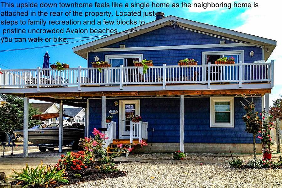 This two story townhome is the ideal beach home to make your family's summer home. Completely updated inside and out this home is a pleasant fresh surprise. The large corner location allows for an expansive (724 sq.ft.) wrap around deck, far larger than your standard side by side townhome deck. (120 sq. ft.) And private too! The townhome sits front and back so you and your neighbor can enjoy private time and conversation without sharing space with each other. The bay views and bay breezes are yours to enjoy while soaking up the sun. The convenience of this location will be appreciated by the entire family with a location just one block to Avalon's newest recreation area and just a few short blocks to some of Avalon's widest and most secure beaches. The bamboo floored foyer and new hardwood staircase welcome you as you enter the home. The floorplan is ideal with two stories of comfortable living and sleeping space. Three first floor bedrooms share a tiled hall bath. Each room has its own unique décor and personality. A spacious storage closet along with the utility room is conveniently placed on the first floor. The second floor great room with vaulted ceilings and bamboo flooring is sun-filled thru the west facing sliders that open to the wrap around deck. The completely renovated kitchen offers granite counter tops complimented by a tile back splash and stainless appliance package. The master bedroom and second tiled hall bath sit on this floor. Outside storage for your beach toys and chairs along with your own enclosed outside shower and off street parking for 2-3 cars are separate for each townhome. Everything has been taken care of just bring your suitcase and beach toys and make this your family summer home today.
