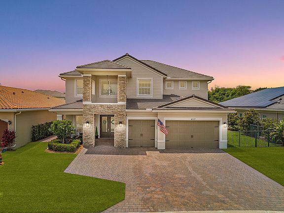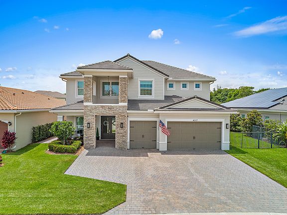 HIDDEN GEM! Sitting on a Gorgeous Lake Lot Offering Serene Water Views Is This Absolutely Stunning & Elegant Former Builder's Model CBS Home Built In 2016; Located In The Exclusive Gated Lake Worth Community: Cypress Royale. This Beautiful Home is 4320 Living Sq Ft; And It Offers 5 Bedrooms Plus A Den, 6 Full Bathrooms & A Spacious 3 Car Garage. Step Inside The Double Glass Entry Door To Find Tall Volume Ceilings With Ample Natural Light, A Wonderful Custom Wood Staircase, To The Left Of The Entrance Foyer Is The Bright Living Room, To The Right Is A Hallway Leading To The Convenient Mud Room & Spacious 3 Car Garage. Past The Custom Staircase You Will Find The Well Appointed Dining Room That Is Generously Sized & The Perfect Space For Family Gatherings. The Den Is Found Behind Barn Doors Near The Dining Room, It Offers A Walk Through Entrance Into A Tucked Away Bonus 2nd Laundry Room With Cabinetry. The Open Concept Kitchen Includes: A Large Kitchen Island With Quartz Waterfall Counter Tops, 42" Raised White Wood Cabinetry With Upper Cabinets, Upgraded SS Appliances, Including A Wonderful Induction Cooktop, Double Door French Refrigerator, Built In Wall Oven & Microwave, Large Custom Organized Walk In Pantry Across A Convenient Wet Bar That Includes A Wine Fridge, Sink & Custom Cabinetry - A Great Spot To Grab A Drink & Relax. The Family Room Includes A Custom Built In Fireplace. The Tall Glass Sliding Impact Doors; Open Up To The Double Screened Enclosed Patio Area That Exude Limestone Pavers, An Exquisite Summer Kitchen, Fully Screened In With Panoramic Views, A Custom Salt Water Heated Pool Recently Re-Finished, A Large Spa & A Cabana Bathroom. The Sunset & Sunrise Views Are Breathtaking Over The Lake & You Can Enjoy Them In The Privacy Of Your Beautifully Landscape Backyard. On The 1st Floor Is A Spacious Bedroom Perfect for Guests That Includes An Ensuite Bathroom With A Walk In Closet. Travel Up The Stairs To Find A Large Loft Area With Built In Wall Cabinetry & 4 Bedrooms That Each Offer Walk In Closets. The Private Main Bedroom Offers A Wonderful Balcony Overlooking the Lake, The Perfect Spot to Catch Sunsets, A Large Walk In Closet With Closet Organizers & Island, & An Ensuite Bathroom That Has A Wide Walk Through Pebble Floor Shower with Double Shower Heads Including A Rain Head, Dual Sinks, His & Hers Vanities, Infinity Mirrors & A Freestanding Tub. You Can Find The Spacious Laundry Room On The 2nd Floor Offering Ample Storage Cabinetry As Well As Upgraded Top Load Washer & Dryer. More Features That This Home Offers Include: LED Recessed Lighting, Crown Molding, Main Bedroom Framed Mirrors, Custom Motorized High Window Shades, California Style Custom Closets Throughout, Custom Fixtures & Fans, High Ceilings, Impact Glass Throughout, Custom Curtains, Built in Speakers, Electric Lanai/Patio Screen Feature, High End Epoxy Garage Floors, Extended Paver Driveway For Extra Parking Space, Added Paver Walk Way To The Pool Area, A Built In Security System, The Backyard Includes A Lime & Olive Tree. Cypress Royale is a Private Gated Community Made Up of Only 74 Homes, With a Low HOA!