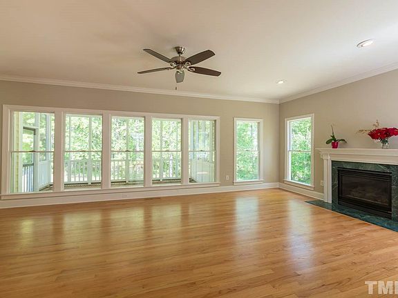 Great opportunity to have a 4.4 ACRE Private Homesite just minutes to everything. Adjacent to Cary & all its amenities. Original owners. Many improvements & upgrades. Refinished hardwds, new paint in & out. Granite & SS appliances in the spacious kitchen. Both formal dining & living rms. Transoms, crown molding & trim. Bathrms have been redone w/new cabinets & granite. Scrned Porch, 4-car garages (1 attached side-entry & 1 detached w/walk-up attic). Hard to find Acreage in this Area! SEE VIDEO WALK-THRU