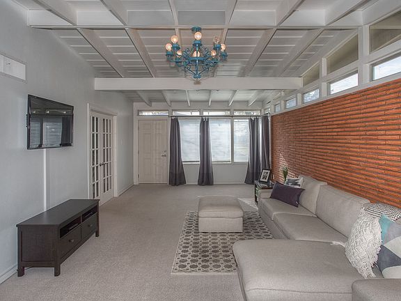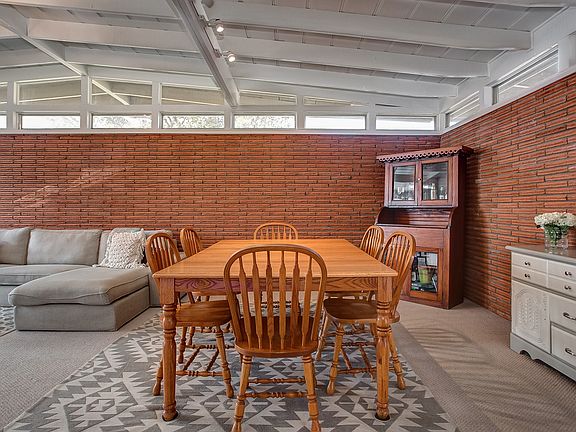 This 3-bedroom mid-century modern home is located in Fort Worth's quiet Ridglea Hills neighborhood. The heart of the home is a huge living room with vaulted ceilings, exposed brick and windows letting in lots of natural light. Kitchen has been updated with gorgeous new floors, stainless-steel appliances, and tiled backsplash. Updated bathrooms include details like new flooring, fixtures and tiled walk-in shower. Huge backyard with mature trees offers plenty of space for outdoor dining, pool or play area.