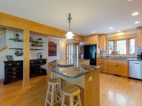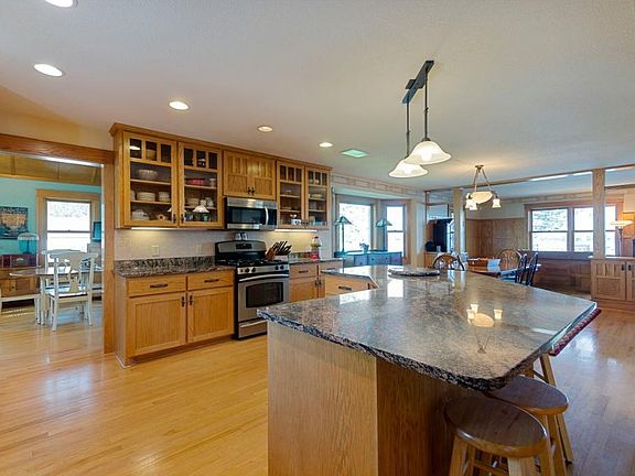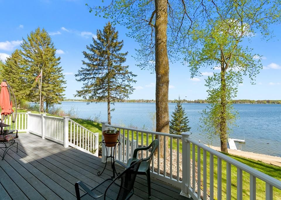 Stately and spacious home with panoramic views of Maple Lake! Incredible attention to detail with hardwood floors, granite countertops, great room with gas fireplace, main floor Den plus the tower/ turret room perfect for the grand piano! The main floor sun-room is ideal for entertaining or relaxing. Upper-level loft overlooks the great room, and upper-level master bedroom suite is complete with whirlpool tub, separate shower and spacious walk-in closet.