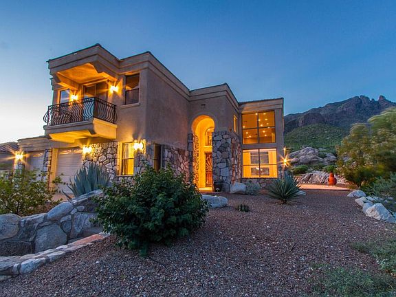 VIEWS and PRIVACY abound at this architecturally pleasing exquisite home in The Summit at Finger Rock. Contemporary design includes raised ceilings, custom sliding doors that open to the patio area, large kitchen with granite counter tops and center island. Downstairs office with built in custom cabinetry w/ Murphy bed making it perfect for guests, large laundry room/craft room with custom cabinets makes living here a breeze! Luxurious wood & iron railings lead you upstairs to find the master suite including custom master closet, large master bathroom with custom stone/granite makes this the perfect getaway. Outside ââEURœ a lovely covered patio area leads you to the perfect entertainers dream! Built in BBQ area, fully fenced pool with no care artificial grass, and relaxing water feature is sure to melt your cares away as you gaze up to the Catalina Mountains. No neighbors behind you creates a private and amazing home! To truly appreciate all this property has to offer ââEURœ you must see it for yourself.
