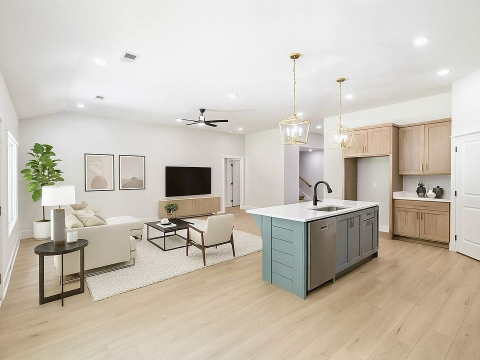 Tree lined backyardBonus roomUpgraded designer finishesQuartz countertops in kitchenLarge covered back porchCustom cabinetry