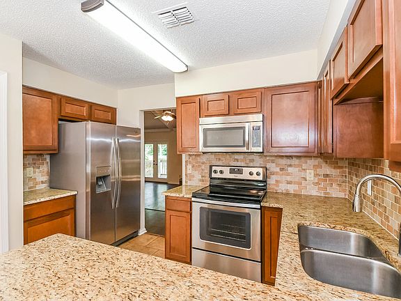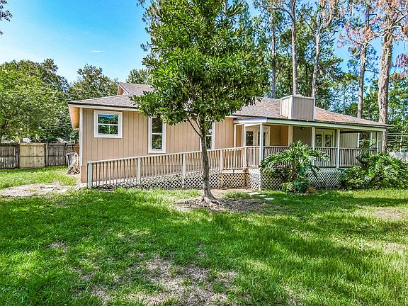 Built in 1983, this Jacksonville one-story home offers tile and vinyl flooring, a wood-burning fireplace, stainless steel appliances, granite kitchen countertops, and a two-car garage.
