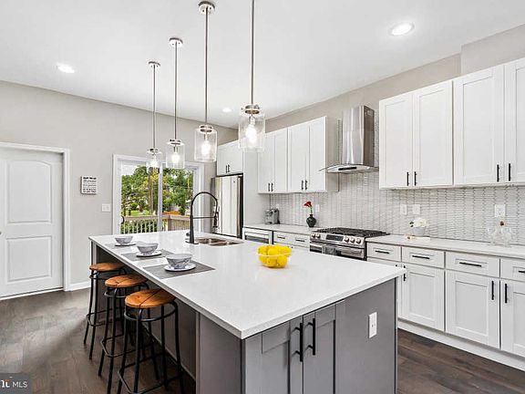 4 levels of Luxury best describes this 5-bedroom, 5-bathroom Home on over a .25-acre corner lot w/ 3600+ Sq. ft, large deck & 2 car garage. Chefs Kitchen Featuring Refrigerator with built in keurig, 10 ft Island w/Quartz Countertops, 5 Burner Stove w/ Hood Range, custom backsplash, & 42" cabinets. 1st Floor master & (2) Second Floor Master Suite (3 master suites total) Main master Has Standalone Soaking Tub, Spa Shower, Dual Vanity, large Closets, sitting area & Exterior deck. Large Finished Basement w/ French drain waterproofing system is great for entertaining with walk out access to large Fenced yard. New Roof, Electric, Plumbing & 2 Zone Heating w/ all approved permits. Beautiful hardwood floors, Trey Ceiling, Fireplace, High end fixtures & 2nd floor laundry. Close to Golf Course, Lake Ashburton, Shopping Malls, Baltimore Zoo, SSA, Parks, i695, i70, i83. Close to #70 #83 & #695