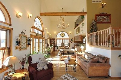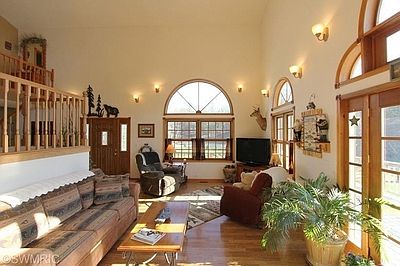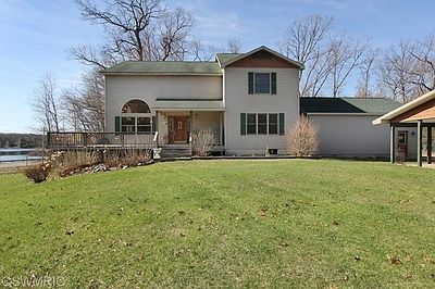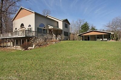 For details and more pictures, call listing Agent: Amanda Korte at (616) 447-7066. Park like setting? This was the county park!! Just 10 miles north of M-57, this 2000 built home sits on 12+ acres (10 of which are wooded and have hunting blinds) overlooking Bass Lake. Brand new in 2009, over-sized attached 2 car garage w/10 foot walls. Inside you will find that this home features the ideal floor plan! Separate mud room, Large main floor laundry room with windows & sink, open kitchen w/tons of counter & cupboard space, open family room w/vaulted ceilings, enormous wrap around deck where you'll enjoy amazing sunsets, main floor master suite w/jetted tub, 3 more bedrooms up the grand staircase share a full bath. Fully finished walk out basement features tons of storage & full bar area! Over 3000 sq ft total! Home has NATURAL GAS and cable tv/cable internet. Giant 40x60 POLE BARN w/covered patio is great for entertaining, graduatuation parties, etc.. Must get inside to appreciate this home and its modern country feel. Convenient location less than 5 mins to 131 for eas