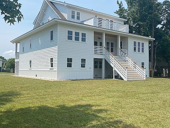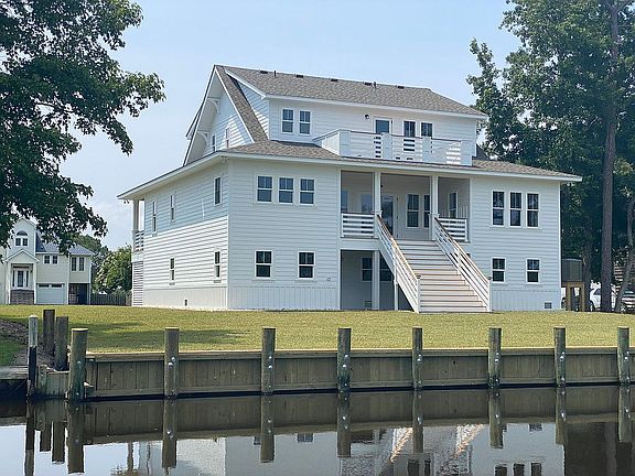 Custom designed home on the water, in one the best boating communities with deep water canals in the OBX. The craftsmanship is unparalleled. The contractor, who is also the builder of this truly remarkable home, won the 2018 OBX Parade of Homes People’s Choice Award and the Judges Award of Excellence. This beautiful 3 bedroom 4 1/2 bath home has many of the same award-winning features and is a must see inside and out! The large open floor plan has solid heart pine floors, solid yellow pine shiplap on the walls and ceiling, and heavy trim throughout. The main floor includes a library with a full bath and custom travertine shower with multiple shower heads, mechanical/mud room, large living room, dining room with seam lighting, laundry room, power room, and a show stopping kitchen. The kitchen features leathered granite counter tops book matched onto the walls, a 36 in gas cooktop with mounted pot filler, beverage cooler, oven/microwave combo, french door fridge, and large pantry with real wood shelving. The 3rd floor has 10 ft ceilings and 3 bedrooms all with custom wood closets. The 2 front bedrooms both have sound views all the way to the Wright Memorial Bridge. The views continue into the Master bedroom where you can relax and take in the true beauty of the outer banks on your own private deck overlooking the native landscape. The deck is wired for a hot tub so you can enjoy the peace and tranquility in privacy. The master bath has a cast iron clawfoot tub and another custom shower with travertine from top to bottom and 3 shower heads. The entry level floor has multiple bonus rooms with tons of storage space and hook ups for an extra fridge and deep freezer. The home has a large garage that can fit 2 cars and a hook up for a commercial ice machine. The outside is just as incredible as the inside with a stamped concrete driveway, brand new bulk head, fresh laid sod, irrigation, and even room for a pool! Kitty Hawk Landing offers a private community and beach access with showers, a private boat ramp, and multiple common areas throughout the neighborhood. There will not be another opportunity like this one. A “One of a Kind” custom built home in the heart of Kitty Hawk on the water! This is what dreams are made of! **Realtor incentive available**