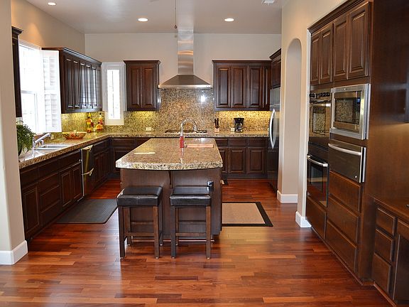 Open Sunday, 4/13/14 from 1:00 - 4:00 pm. Every once in a while a truly exceptional home comes onto the market; this is one of them. This 3859 square foot home shows like new and is on a rare, nearly one half acre lot landscaped to perfection. With exquisite cherry wood flooring this home lives as if it's over 5,000 square feet with a grand island kitchen, butler's pantry, and, a versatile, beautiful floor plan that could be 4 - 6 bedrooms with 4 bathrooms and additional sitting rooms. Entertain in grandeur amongst a garden oasis with multi-level waterfalls, pond, built-in gas BBQ island, fire pit, lush lawns, expansive patios & elevated terrace that offer a multitude of entertaining, dining and seating areas, and, a separate courtyard with a stately multi-tiered fountain. There's an abundance of other amenities such as a kitchen with 3 ovens, a warming drawer and 2 drawer dishwashers, a superb master suite with twin walk-in closets, balconies with sweeping panoramic views, a front entry that faces east, central vacuum system, separate laundry room, video entry system, alarm, 3-car garage, and, an enormous insulated shed. Call for your private showing while this exceptional property is still available!