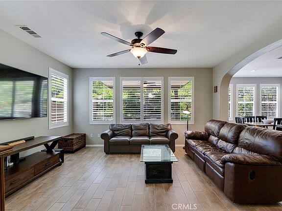 As you walk through this beautiful 3 bedroom, 2.5 bath detached home located in desirable Villagio, you will find that his home has pride of ownership and upgrades throughout. The remodeled kitchen with large island and granite countertops is equipped with stainless steel double oven, microwave, dishwasher and refrigerator and reverse osmosis at the kitchen sink. You'll find wood-like tile and shutters throughout the home as well as a ceiling fan in the spacious living room and in every bedroom as well as a whole house water softener. This lovely home is also equipped with Lutron Caseta with smart lights/fans throughout the home and an app that you can download to your phone that also works your garage door, as well as Simply Safe alarm system that engages the doors and windows and includes a front door camera.