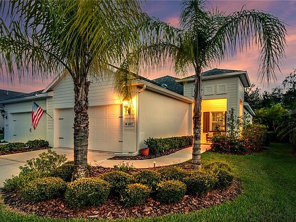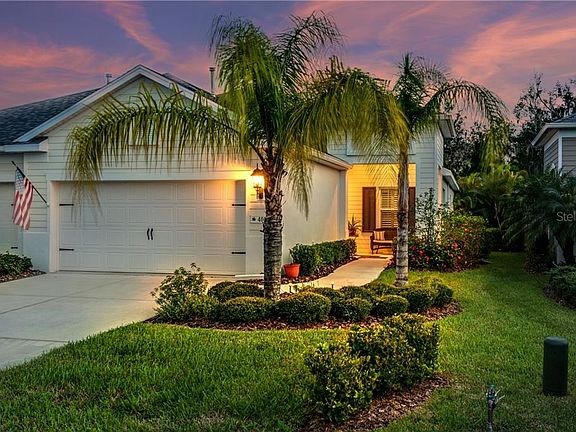 Absolute SERENITY! Welcome to this stunning maintenance free home that is nestled in a community that is SO unique! Tucked away on a quiet street, you'll see why everybody loves living in Silverleaf. The adorable front porch, immaculate upgrades, and open floor plan are just a few of the things you'll fall in love with when walking through the front door. This Neal Communities Tidewater MAINTENANCE FREE model offers 2 bedrooms and 2 bathrooms PLUS a den/office. Boasting so many upgrades such as a plantation shutters, reverse osmosis, trey ceilings with crown molding, tile throughout, built-in cabinetry for storage in the dining room, stainless steel appliances (GAS available), staggered kitchen cabinets with crown molding, and 9.4ft ceilings - it's BEAUTIFUL! The private Master bedroom offers dual sinks, walk-in closets, and stand-up shower. Sliding 3- panel doors off of the great room lead to your private backyard oasis featuring an extended lanai, and cozy seating area which makes a great space for family BBQ's and entertaining. Silverleaf has wonderful amenities! Clubhouse, fitness, swimming pool, playground, dog parks, and nature trails are just a few. Sidewalks throughout community are great for strolling around or sitting and watching wildlife. Conveniently located near outlet mall, restaurants, golf, shopping and beaches. The Fort Hamer bridge makes for easy commuting to Lakewood Ranch. CDD fee is INCLUDED in taxes!