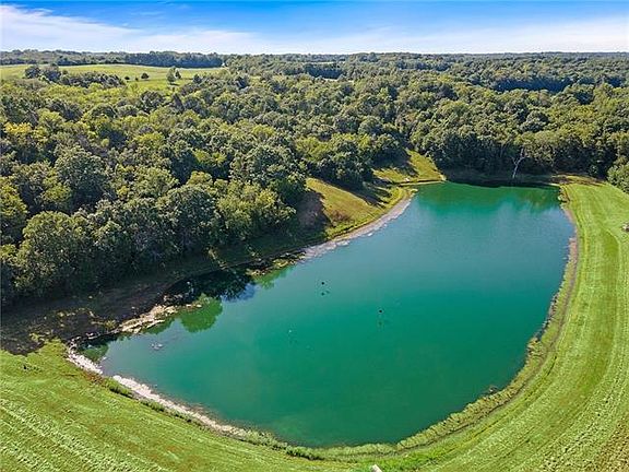 Here is your chance to own your own private retreat surrounded by 160+/- acres of nature! Nestled in the trees for complete privacy, this two bedroom two bath home was completely remodeled two years ago with top notch finishes, overlooks the beautiful fully stocked lake, and has an outdoor area perfect for enjoying the evenings outside. The 24X30 shop has concrete and electric. The layout of this land provides the most beautiful scenery and is an outdoorsman's dream with lots of wildlife, excellent for hunting! The land is made up of approximately 45 acres currently in production with beans, 13.52 acres in CRP, a 4 +/- acre stocked lake and a couple of other small ponds, with the rest being in heavy timber and several open pasture fields, some fenced for animals. There is a creek that runs along the east side of property, trails to ride ATV's and several deer stands throughout that stay with property. This property has hardwood trees that have never been harvested and the potential of $10,000+ a year annual income with CRP, tillable acreage and hay. Less than an hour from KC, this would be ideal for your primary residence or a weekend hunting getaway!
