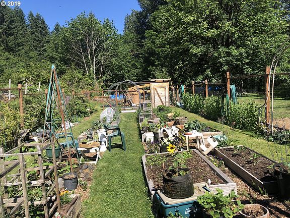 Gardeners paradise! Charming home nestled in the woods Brice Creek tributary right next to the house. Prolific well, giant garden, lots of fruit trees & room for camping. House has two bedrooms, library has closet & could be used as third bedroom, plus office. Family room, living room, heating, certified wood stove, pellet stove & zonal. New storage building plus other outbuildings. Such a neat home & property. Possible seller finance.