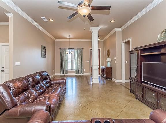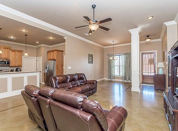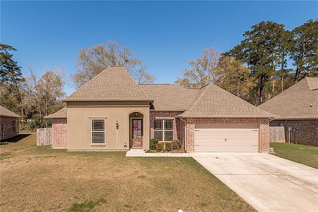 Beautiful, open, split floor plan. Kitchen has granite counters, stainless steel appliances, including a gas stove. Open areas & master bedroom include crown molding and master bedroom has a tray ceiling. Master bath includes a separate tub and shower, granite counters and 2 closets. Backdoor opens to a covered, concrete patio and a private, fenced yard for outdoor entertaining and relaxing. Subdivision is conveniently located at Hwy 22 and Adams Road, close to I-12 & I-55.