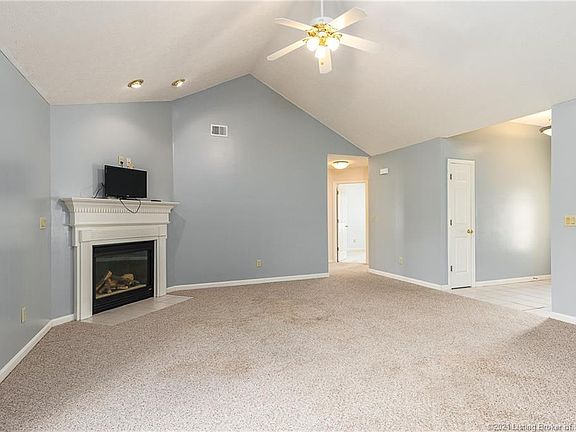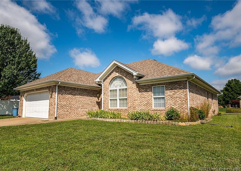 3 Bedroom 2 Bath all brick ranch conveniently located off County Line Rd! You are greeted at the front door by a foyer with coat closet. The Living room has gas fireplace, vaulted ceilings, and is open to the dining area in the eat-in kitchen. Off the living room, there is a door leading to the back patio overlooking the backyard. The kitchen features a pantry and laundry closet with 2 car attached garage off the kitchen. Master suite offers a tray ceiling, double vanity, and walk-in closet. This home has a Sellersburg address, but is in Floyd County. Take advantage of this opportunity to buy an all brick home in a desirable, quaint neighborhood with only two streets with easy access to Grant Line and Charlestown Rd.