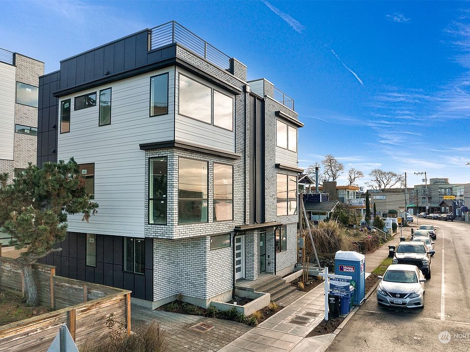 An exceptional setting, Key Development has done it again with four luxury townhomes on Beach Drive, just around the corner from Alki Beach. These units have it all – square footage, dimensions, finishes, parking, rooftops, and of course VIEWS. 4020 Beach Drive has 3 bedrooms, flex space/den, a massive kitchen with all the designer touches, Samsung Appliances, custom white shaker cabinets, floor to ceiling windows, and powder room. Large fireplace in the living with tons of natural light. Air conditioning on two floors. Master bath has beautiful marble finishes, a dual vanity and two-piece rain shower. Utility room on third floor. Rooftop deck for stunning sweeping sound and mountain views. Off-street parking wired for EV charging.