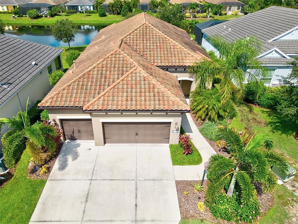 Welcome to your dream home in the coveted Indigo neighborhood of Lakewood Ranch! This stunning Sea Star Model offers everything you've been searching for. Nestled on a tranquil cul-de-sac, this move-in ready residence boasts 3 bedrooms, 2 bathrooms, a den, and a 3-car garage. As you step through the double entryway doors into the foyer, you're greeted by an abundance of natural light that fills the open floor plan. French doors lead to a den, providing a quiet space that can easily be utilized as a home office. Working from home has never been more comfortable or convenient. The living room features elegant tray ceilings and beautiful tile floors that flow seamlessly into the kitchen. The kitchen is a chef's delight, offering ample counter space, modern appliances including a cooktop, vent hood, double oven, and dishwasher. The eat-in dining area provides a perfect space for family meals, while the large kitchen quartz island is perfect for entertaining. A pantry ensures you have all the storage you need. One of the highlights of this home is the serene water views of the pond that can be enjoyed from various parts of the house. Pocket sliding doors lead out to the expansive lanai, where you can unwind and enjoy the Florida lifestyle. The lanai is roughed in for a gas built-in outdoor kitchen, perfect for hosting gatherings and barbecues. The master bedroom has been extended to include a cozy sitting area that overlooks picturesque water vistas. Tray ceilings add an air of sophistication, and the en-suite bathroom features a tiled walk-in shower. His and her walk-in closets provide ample storage space for your belongings. Convenience is key, as the laundry room comes complete with a washer, dryer, sink, and cabinets. The gated community with NO CDD tax is a true gem, and the LOW HOAs cover lawn maintenance assistance, including trimming, irrigation, and mulching. This leaves you with more time to enjoy the community's exceptional amenities. The amenity center features a state-of-the-art fitness center, a resort-style pool, pickleball and bocce courts, a playground, and even an on-site lifestyle director to ensure you're making the most of the good life. Don't miss this opportunity to live in luxury and comfort in the heart of Lakewood Ranch's Indigo neighborhood. Your Florida oasis awaits at 4018 Celestial Blue Ct!
