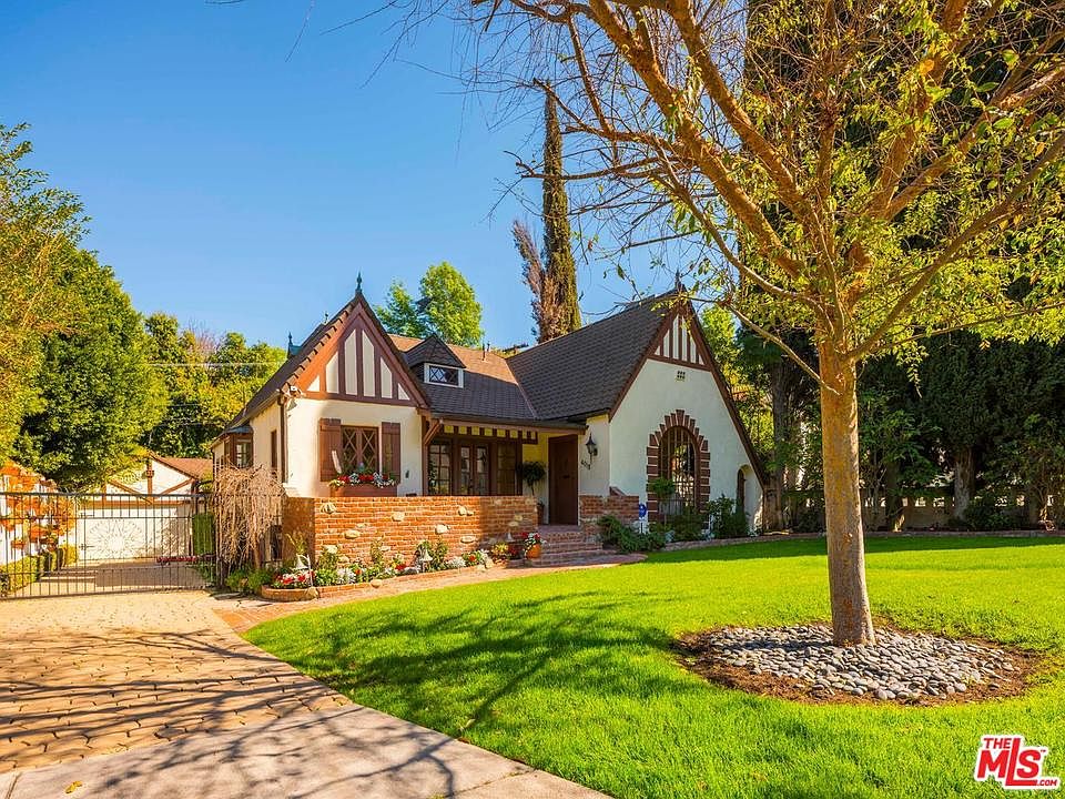 The most charming English Tudor south of the Blvd in Sherman Oaks is now on the market first time in over 25 years! Beautiful original details. Lovingly updated kitchen with gorgeous marble counter tops and top of the line appliances. Sumptuous master bath with beautiful tile, fabulous tub and separate shower.Original hardwood floors, French doors, cathedral beam ceilings with amazing fireplace in living room. Formal dining room, separate breakfast room. Large open family room/sun room with banks of windows and French doors leading to the enchanted gardens and patios. Separate detached cottage with living room, fireplace, 3/4 bath and bedroom/office can be guest quarters or art studio. Cottage may not be included in sq.ft. count. Wonderful landscaping throughout makes this property a one of a kind.