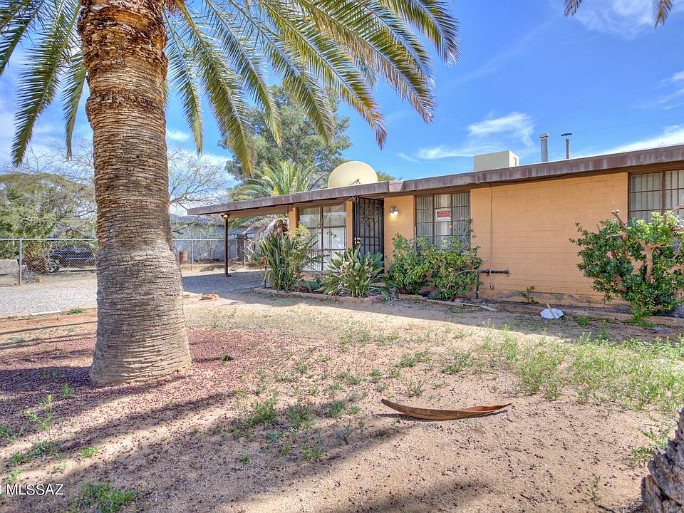 Great opportunity to make this residence your own with some TLC. Large, fully fenced lot with plenty of parking, 1-car carport, space for RV's, metal storage sheds on pavers, and established trees. Good floor plan with 3 bedrooms, 2 full bathrooms, separate laundry room, central kitchen, and two living areas. Close to I-10, Davis Monthan Air Force Base, Border Patrol Headquarters, and several business and industrial parks. Good primary residence or investment property.