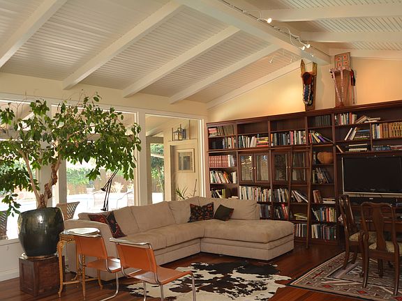 Wonderful spaces & light in this mid century contemporary. Vaulted living with a wall of windows overlooking beautiful pool & terrace. Great floor plan with open kitchen, dining, den. Beautiful landscaping. Sprinkler.