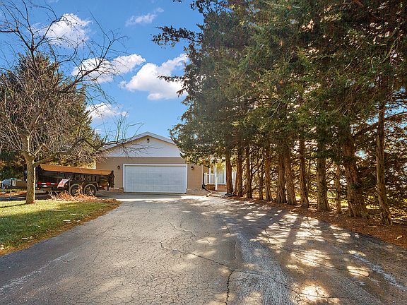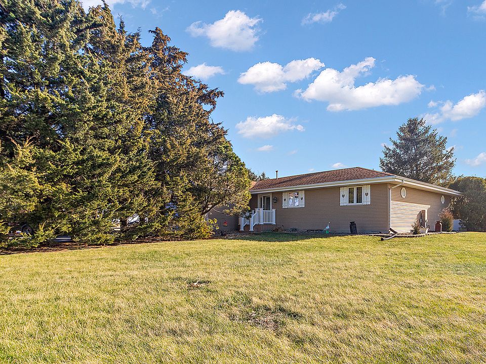 Great 2.46 Acre Ranch Home with full basement. This home has a nice layout. Drive onto the circle driveway and enter into the foyer with double closets. The kitchen and family rooms are at the rear of the home with great views of the backyard and pond. The kitchen is open to the dining and family room areas and features a large island and tons of cabinet storage. All of the appliances are included along with an extra fridge and deep freeze in the basement. The living room has a large picture window allowing for lots of natural light. The front porch and deck on the back are maintenance free with composite decking. This home has 3 bedrooms and 2 full baths. The main bath has double sinks and a large linen closet. The master bedroom has a huge WIC and private bath with large shower. The basement is dry and has the laundry area with sink, floor drains, and sump pump. The garage is attached and measures 27x24 with a pull down stair for attic storage. The pond is approx a 1/2 acre with an aerator, stocked and around 8 feet deep with a beach area. Have peace of mind with a whole house generator. This property is very clean and well maintained. This is a must see!!