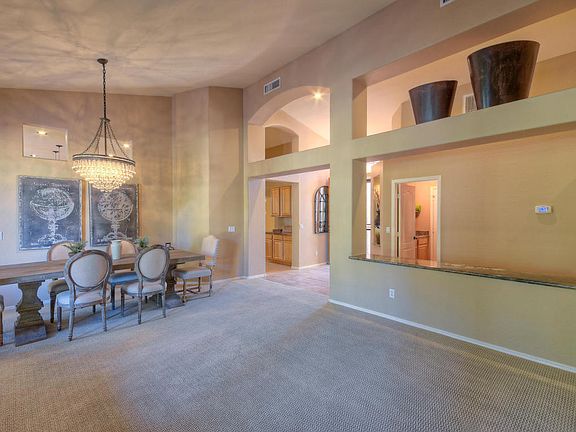 BEAUTIFULLY UPDATED - EXCELLENT LOCATION! Bright & open w/vaulted ceilings - This home is an entertainers delight, featuring a large family room and dining area, huge kitchen with timeless cabinets, granite countertops, and gorgeous backsplash. The living room offers a separate formal dining area, or use as an extra large living room. The large master bedroom leads to the oversized patio. The master bath features a luring soaking tub, double sinks and large walk in closet! The desirable north facing backyard offers a large "roman stamped concrete" patio, extra special grassy area, and sparkling salt water play pool. Walking distance to schools and parks in Desert Ridge! NEW A/C!! Furniture available on separate bill of sale.