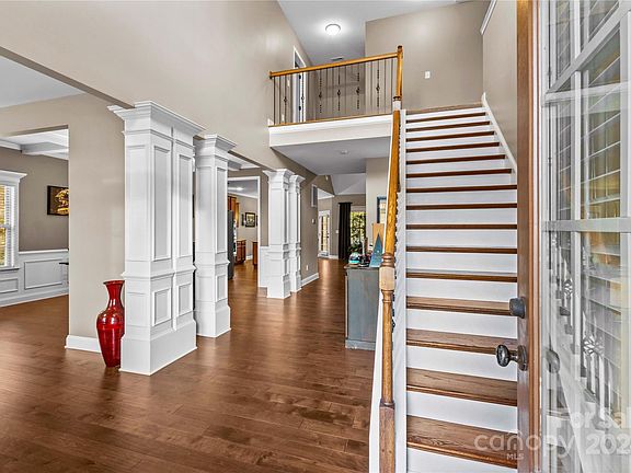 Prepare to fall in love with this stunning full-brick home nestled in the highly desirable Norman Pointe community. From the moment you arrive, the luxury, comfort, and thoughtful design of this property truly shine. Step outside into your own private backyard oasis — an entertainer’s dream. The custom-built bar features a full granite top, under-bar lighting, and a wall-mounted TV, making it the perfect spot for weekend gatherings. A gorgeous custom fireplace, charming pergola, and hammock create an inviting atmosphere beside the San Juan heated saltwater pool (installed in 2021 by Poolscapes of Charlotte), all surrounded by expansive patio space ideal for games, lounging, and celebrations. Inside, the spacious kitchen and great room offer an inviting place to gather, complete with a breakfast area and coffee station. The elegant dining room showcases a coffered ceiling and beautiful millwork, perfect for hosting holidays or dinner parties. A formal living room provides excellent versatility — use it as a sitting room, home office, or creative space filled with natural light. The main-level primary suite is your personal retreat with dual walk-in closets, a large en-suite bath, and a generous separate sitting area featuring a fireplace, wall-mounted TV, and its own full walk-in closet. This space functions beautifully as a private movie area, home office, or nursery. Upstairs features four spacious bedrooms (three with vaulted ceilings), two full bathrooms, and exceptional flexibility. One room functions perfectly as a bonus room, media room, game room, or private guest suite. This home checks every box — luxury, comfort, outdoor living, and room to grow. For a video walk-through of the property, visit: