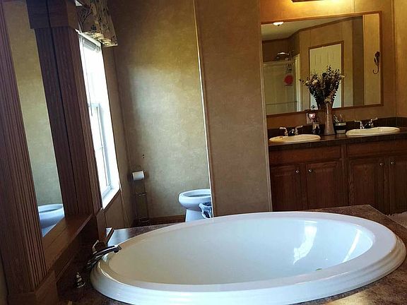 Must be Moved. Come and see this beautiful manufactured home with an open floor plan and plenty of space for your whole family! This is 4 bedroom, 2 bathroom (plus office) home will give you 2280 sq ft of generous and well-planned space Large walk-in closets, built-in shelves, and many storage nooks will provide you with plenty of space to organize all of your things the way you want! Large master bathroom has a huge bathtub for you to crawl in and read a book after a long day of work, plus, it includes walk-in shower, vanity, and two big closets. Master bedroom has a fresh coat of paint with beautiful wallpapered accent wall. For all the food-lovers, open-concept kitchen has a huge island with wine racks, plenty of storage, pantry, stove, and refrigerator. Two living-rooms have plenty of space to entertain your family and friends, and don't forget the beautiful stone and wood fireplace. And look at that beautiful baby girl bedroom, it has gorgeous wallpaper, walk-in closet, and laminate flooring House is well-maintained, cleaned-weekly, and non-smoking. A/C unit, refrigerator, stove, included together with small steps. To make it easier for you to move, we can include our living room furniture, den furniture, curtains, and 12x20 porch for extra $3000
