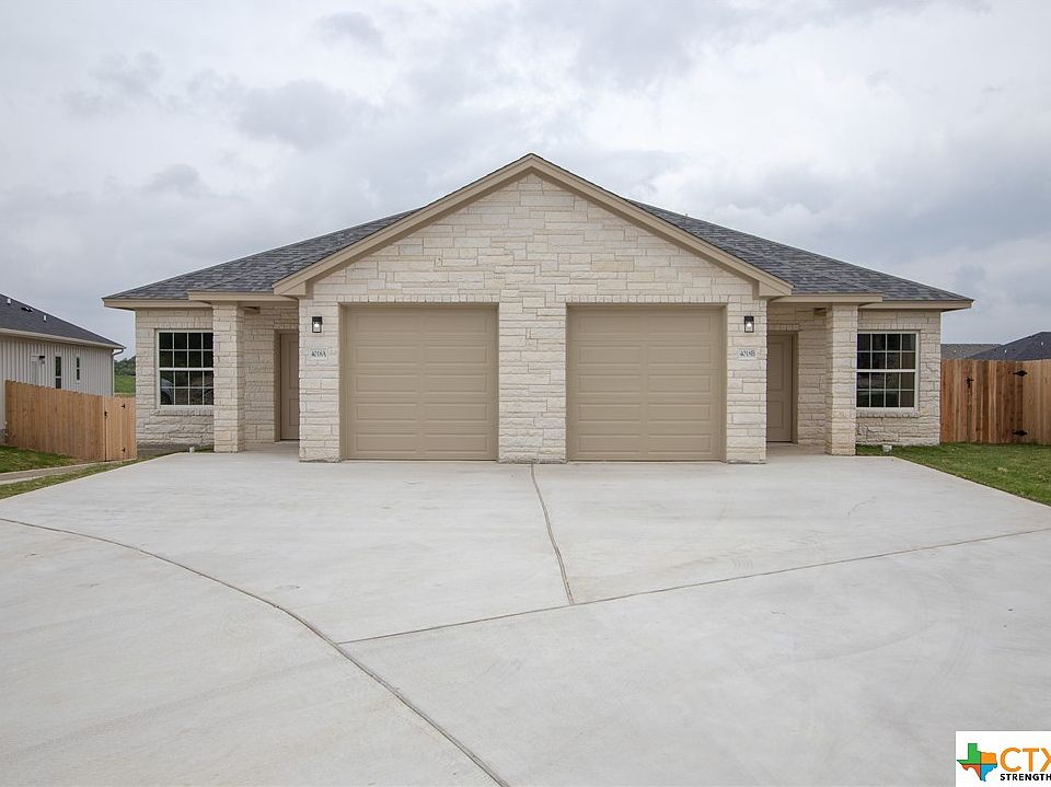 New construction by Texas Home Exchange! The curb appeal is just the beginning! This beautifully styled duplex has so much to offer, including a great location! Each side has 3 bedrooms, 2 bathrooms, 1 car garage, stainless-steel kitchen appliances, fully sodded yard, inground irrigation system with separate controls and privacy fenced yards. Once you enter the front door, you will immediately notice the LVP flooring and high ceilings in the living room. The open floor plan transitions smoothly into the dining area and kitchen. The quartz countertops, modern pendant lighting over the island, make this a nice gathering spot for family and friends. As you proceed, you will see the first two bedrooms and a conveniently located full bathroom in the hallway. At the very back, you will find the master bedroom and master bathroom. The bathroom includes a double vanity, shower/tub combo and walk-in closet. PLUS! located near hospitals, shopping, grocery stores, schools, parks and country clubs