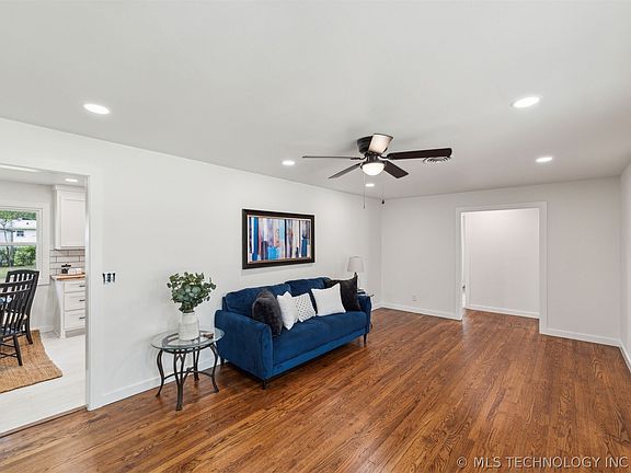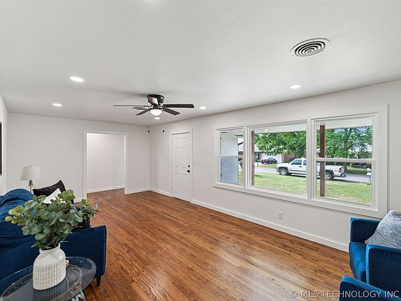 Better than new 3 bed home close to everything in town. New cabinets in kitchen and bathrooms, new appliances, beautiful hardwood floors and new tile, new paint inside and out, new vinyl windows and so much more. Home features extra space with fireplace that could be used as den/office or 2nd living room. Large fenced backyard with mature trees and a covered patio space. Easily walk to nearby restaurants and shopping. Conveniently located near hwy 75 for easy commute into Tulsa.