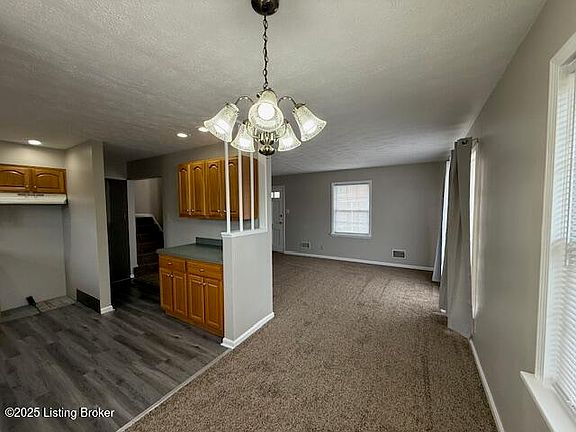 Must see 4 bedroom, 2 bath home with great floor plan! Brick Tri-level. Large family room with dining area with big window for lots of natural light. Upstairs you will find 3 bedrooms and a full bathroom. In the lower level there is a family room, bedroom and full bathroom. Fresh paint and new carpet and pad throughout. Updates include replacement windows(except for the large window in the family room), gutters and downspouts 2024. One car carport and privacy fenced backyard with shed. Close to shopping and expressways.