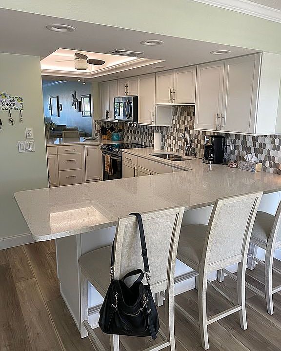 This is not your typical waterfront condo in Cape Coral, with nearly 1400 square feet, this condo feels spacious, light, and bright! The association takes great care of this complex, the entire building features new paint, brick pavers, awesome heated community pool, and a well maintained dock. The condo comes with a covered car port and extra storage room. You will enjoy stunning views from the screened balcony that overlooks the amazing Rubicon canal. Nice sized Landry area with more storage! Boaters, the dockage is first come first serve. However, there seems to ample room! Short distance to Veteran's Park! Updated bathrooms, kitchen has new cabinets and quartz countertops with all new stainless appliances. New flooring throughout entire condo.