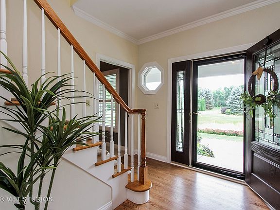 WOW! Check out the recent updates to this kitchen: NEWLY refinished wood floors,NEW Stainless Steal appliances and great new eat-in kitchen area that opens to the family room. This meticulously kept home screams QUALITY and VALUE! The exterior features a grand circular drive, plantation shutters and charming wraparound porch. The interior boasts 9 ft. ceilings, white trim, crown molding, all NEW Pella windows, a new front door and high-end garage doors. 4 bedrooms PLUS finished BONUS room that could be used as INLAW arrangement, Kids hangout, 5th bdrm... The oversized 3-Car garage has fresh epoxied floors. Enjoy family time in the finished basement w/ space for recreation and storage. Central vac, dual/zoned heating and A/C. Must see to appreciate. Located in sought after Steeple Run Estates & TOP RATED Prairie Ridge School district. Mins. to shopping, health club, hospital, Metra Train, golf courses and walk to park and soccer field. Move-in Ready, QUICK CLOSE Possible